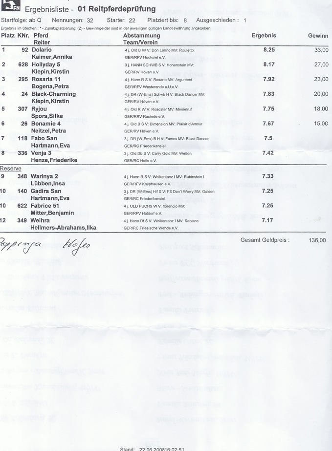 dritten Platz. Unter Petra erhielt Rosa eine 7,92 als Gesamtnote.