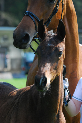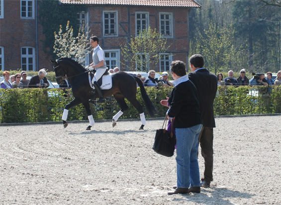 Unter den Augen von Uwe Heckmann, Jens Meyer und Hans-Heinrich Brüning wurden die Fohlen, getrennt nach Stut- und Henstfohlen gerichtet. Bei den Hengstfohlen konnte sich aus den USA angereiste Züchterin Ann Kitchel über einen Sieg ihres Floriscount-Dormello- Silvio Fohlens freuen.